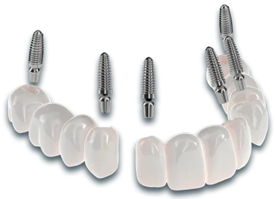Knoxville Smiles offers a unique alternative to All-on-4 that is lighter and thinner. The 3 on 6™ dental implants are specially designed to restore your natural eating and chewing. As the name states, six implants are installed to provide strength and stability while protecting from jawbone loss. Three natural-looking, bright, and solid Zirconium bridges are connected to the six implants with no acrylic mouthpiece. This means the bulkiness of a traditional full arch mouthpiece goes away. You can chew, smile, and speak freely. It's like having natural teeth!
